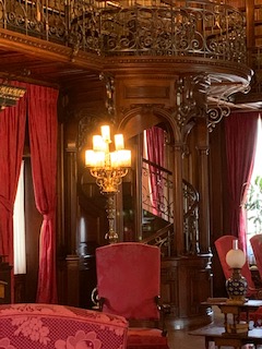 First, of course is the library which was Mr. Vanderbilt’s favorite room as well. He loved to read and had books of many languages in his collection. The staircase that my great-great- great- grandfather we believe may have had a hand in making is located there as well. It is delicately carved and leads up to the second level of the library. We just gazed at the beauty of this amazing woodwork.